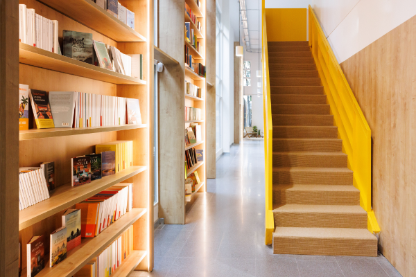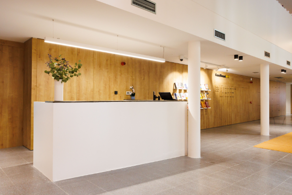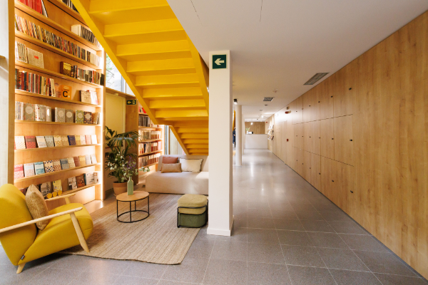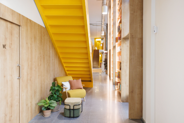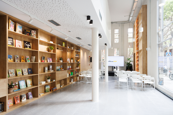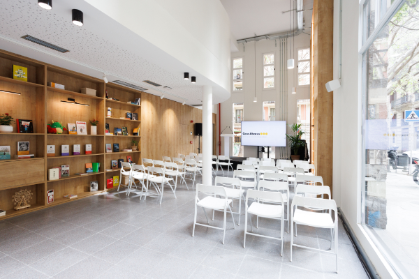 Amb 1.500 m² repartits en dues plantes, l’edifici ha estat concebut amb espais oberts, flexibles i sense llocs de treball fixos, incorporant zones de reunions, formació, trobades i concentració. Una reforma que posa al centre la cultura, la sostenibilitat i la innovació, tot preservant elements originals com la històrica llibreria d’Edicions 62.